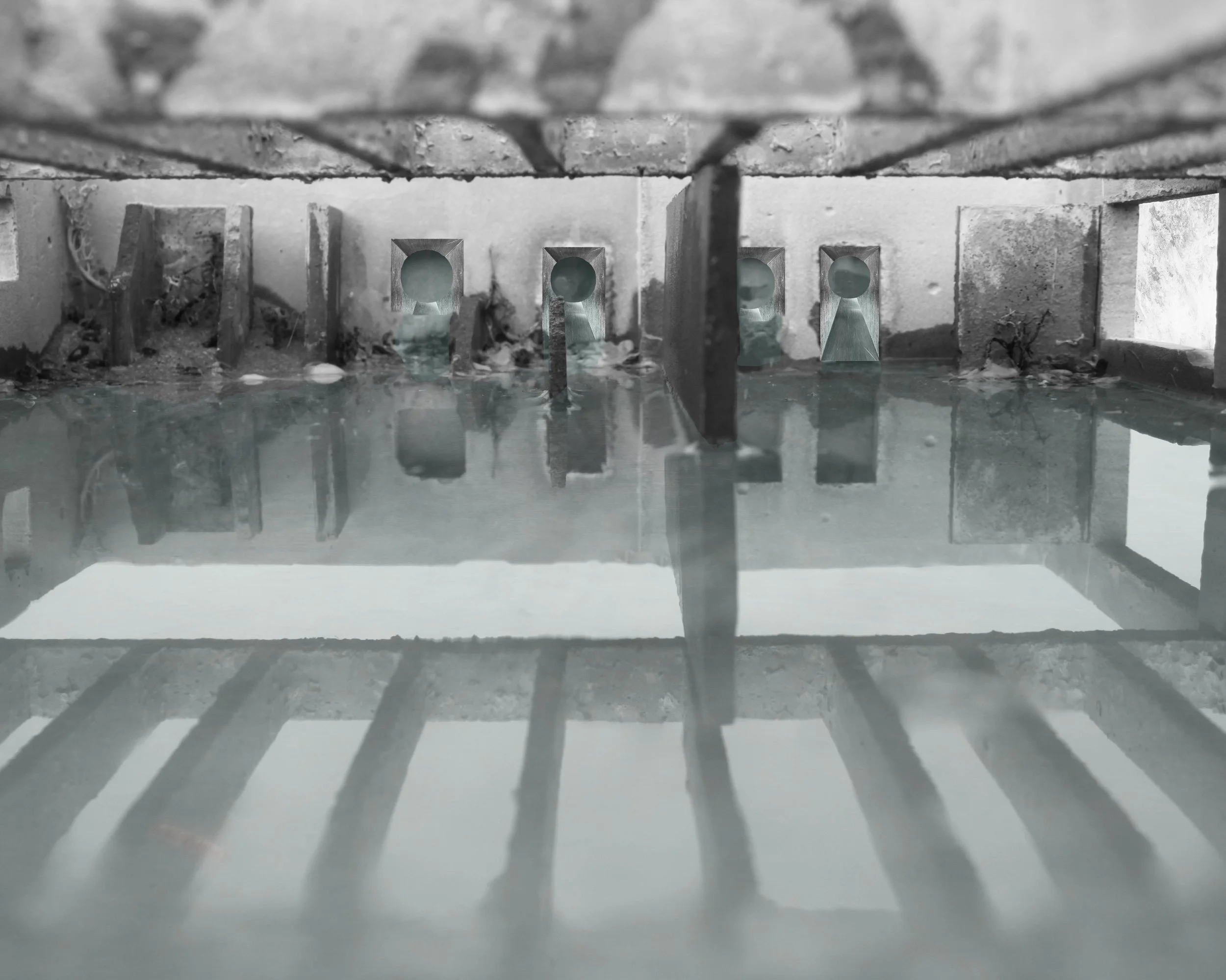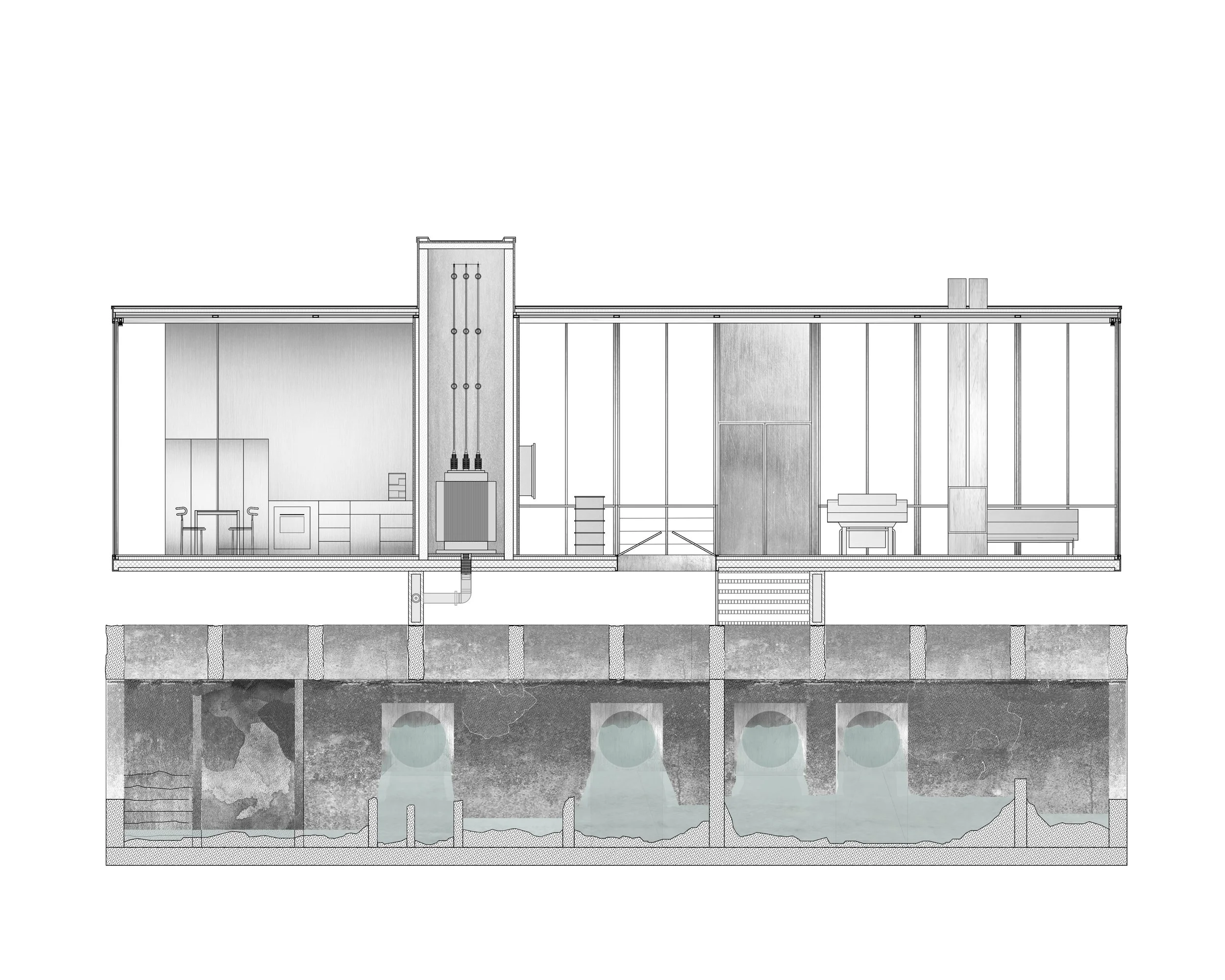 Das Untergeschoss wird vom Wasser zurückerobert, im Obergeschoss entsteht Autarkie.